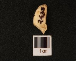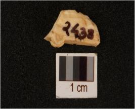 | Description / विवरण | An agate debitage with one ponted white in colour use flake marsks on edge. |