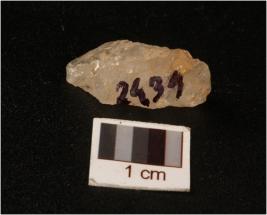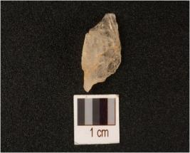 | Description / विवरण | A quartz crystal debitage uneven of surface irregular in shape trans parent. |
