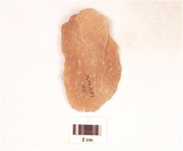 | Description / विवरण | A scraper made on quartzite stone, mid ridge on dorsal surface, ventral surface is smooth with diffused bulb at end use wear marks on edges. |