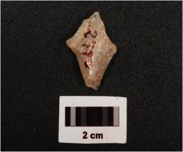| Description / विवरण | Fragment of a blade made with quartz stone, diffused bulb on ventral side, use wear marks on working edge, flake scars, on dorsal surface. |