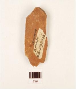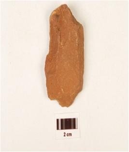 | Description / विवरण | A scraper made on quartzite side struck flake, use wear edges, flake scars on surface. |