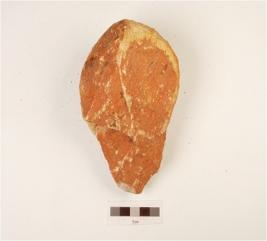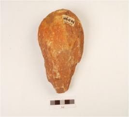 | Description / विवरण | A hand axe made on quartzite pebble with triangular section, flake scars on both sides. |