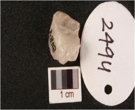 | Description / विवरण | Debitage of quartz core prapared platform irregular micro flake scars on all sides |