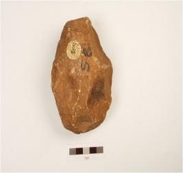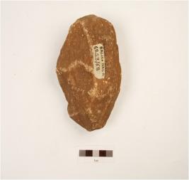 | Description / विवरण | Chopping tool, made on pebble, bifically flaked, cortex visible on one end, triangular cross section. |
