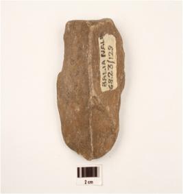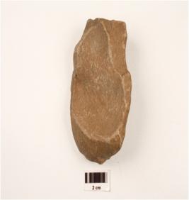 | Description / विवरण | A scraper made on quartzite, end struck, unifacial, convex in section, flake scars on dorsal side and flake scars on ventral side. |