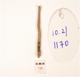| Description / विवरण | Fragment of a copper nail, irregular shaped with rough surface. |
