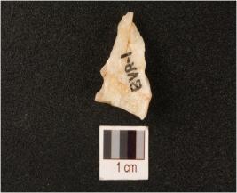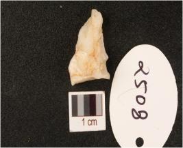 | Description / विवरण | A quartz point, qunfirished prepared platform irregular flaking scars. |