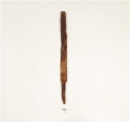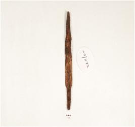 | Description / विवरण | An iron elongaled spear head long in size, one end pointed, triangular cross section and rough surface and tanged. |