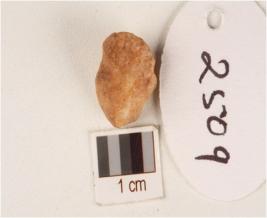 | Description / विवरण | Fragment of quartz pebble flake scars on surface not visible amymore visible cortx rough surface |