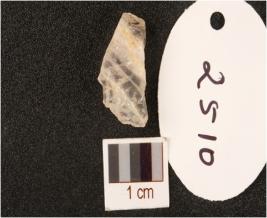 | Description / विवरण | A micro quartz dibitage of a flake parallel micro scars, prepared platform |