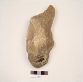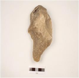 | Description / विवरण | A handaxe made on quartz side struck flake, use-wear marks on cutting edges, flake scars on both sides, triangular in section. |