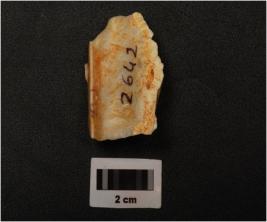 | Description / विवरण | An agate flake with flake scars, smooth surface and cortex is visible. |