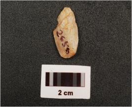 | Description / विवरण | A quartz end struck flake, negative bulb on ventral side and partly broken at one end |