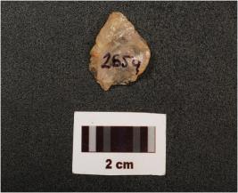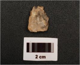 | Description / विवरण | A quartz flake with striking platform and diffused bulb on ventral side. |