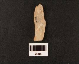 | Description / विवरण | Quartz blade with use wear makrs along cutting edges prepared platform mid ridge on dorsal side |