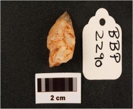 | Description / विवरण | Flake on quartz with use wear marks along cutting edges flake scars on dorsal and diffused on ventax side prapared platform |