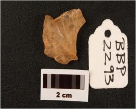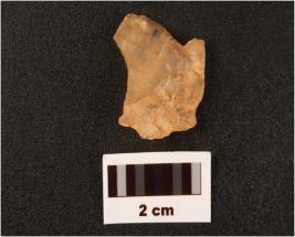 | Description / विवरण | Flake on quartz with use wear marks along cutting edges prapared platform flake scars on dorsal side diffused bulb on ventex side |
