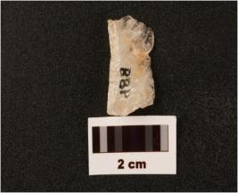 | Description / विवरण | Flake on quartz with use wear marks along cutting deges prapared platform ovil in section |