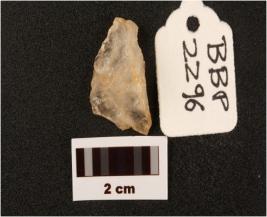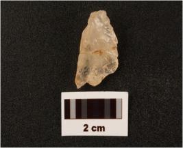 | Description / विवरण | Flake on quartz with use wear marks along cutting edges, prapared of platform negatine bulb on ventex side |