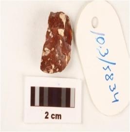 | Description / विवरण | A stone flake made on chert, yellow in colour, prepared platform and glossy surface. |
