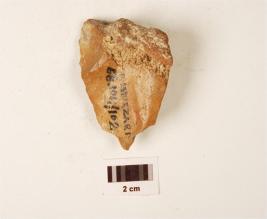 | Description / विवरण | Fragment of indeterminate object, made on quartzite with smooth surface and cortex on surface. |