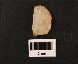 | Description / विवरण | Flake on quartz with use wear marks along cutting edges, prepared platform diffused bulb on netural side |