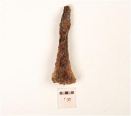 | Description / विवरण | A fragment of iron nail, uneven surface pointed and slightly broken end rusted surface and circular head. |