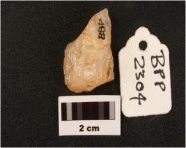 | Description / विवरण | Flake on quartz with use wear marks along cutting edges prepared platform smooth surface with broken one end |
