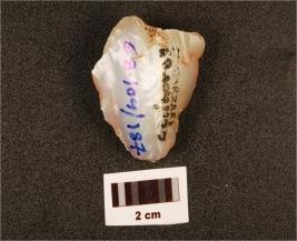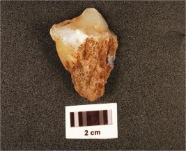 | Description / विवरण | Fragment of indeterminate object, made on quartzite with smooth surface and cortex on surface. |