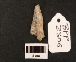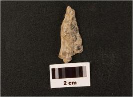 | Description / विवरण | Flake on quartz with use wear marks along cutting edges |