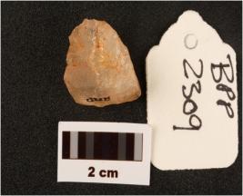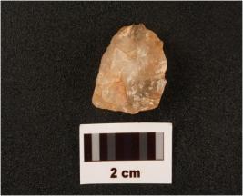 | Description / विवरण | Flake on quartz with use wear marks along cutting edges prepared platform |
