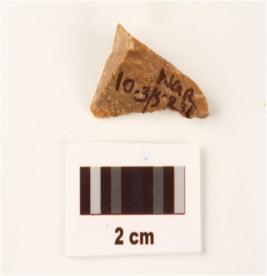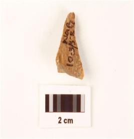 | Description / विवरण | A stone flake made on chert, red in colour, defused bulb on proximal end. |