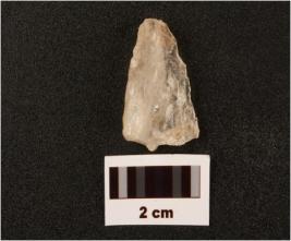 | Description / विवरण | Flake on quartz with use wear marks along cutting edges prepared platform bulb |