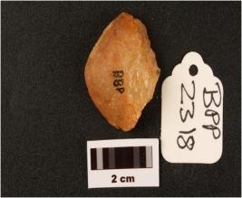 | Description / विवरण | Flake wade on quartz with use wear marks along cutting deges paepared platform flake scars on sorsal side diffused bulb on ventax side triangular in section |