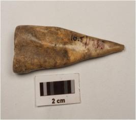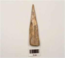 | Description / विवरण | A bone point with pointed end, surface in smooth and brown in colour. |