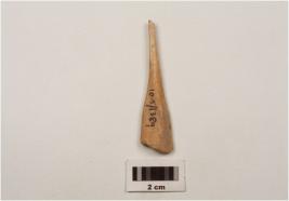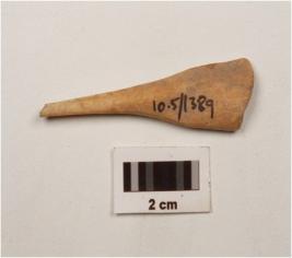 | Description / विवरण | A bone piont with pointed end, surface is smooth, brown in colour and flat base. |