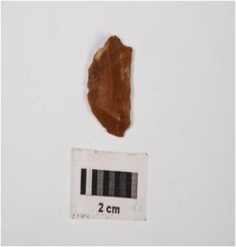 | Description / विवरण | Scraper with a positive bulb on one side working edge on side, ridge visible on one side. |