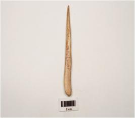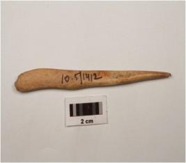 | Description / विवरण | A bone point with pointed end, surface is smooth and brown in colour. |
