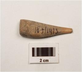 | Description / विवरण | A bone point with pointed end, surface is smooth and brown in colour. |