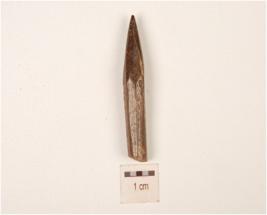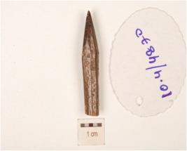 | Description / विवरण | Charred bone point, has faceted point tip one end is pointed polished surface and circular section. |