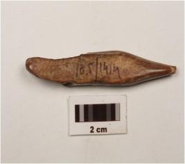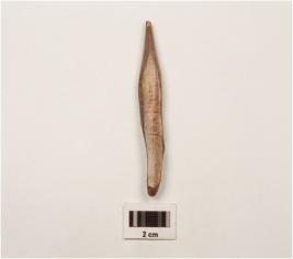 | Description / विवरण | A bone point end is pointed, smooth surface brown in colour and cracks marks visible uneven. |