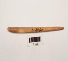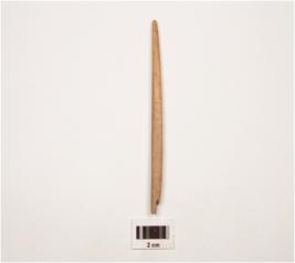 | Description / विवरण | A small bone point with pointed end, smooth surface, cracks are visible and brown in colour. |