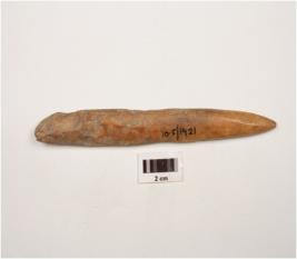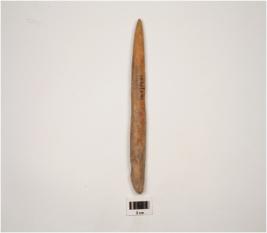| Description / विवरण | A bone point with pointed end, polished surface, brown in colour and grooved on upper side. |