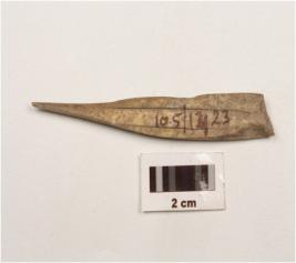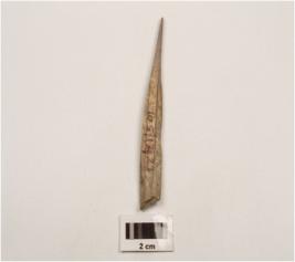 | Description / विवरण | A bone point with pointed end, cracks are visible, smooth surface and brown in colour. |
