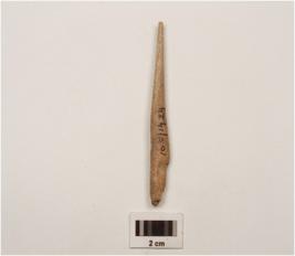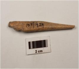 | Description / विवरण | A bone point with pointed ends, surface is smooth and brown in colour. |