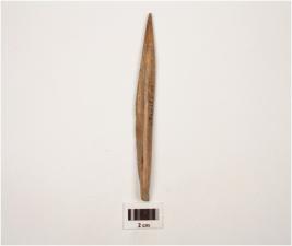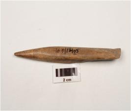 | Description / विवरण | A bone point with pointed ends, surface is smooth and brown in colour. |