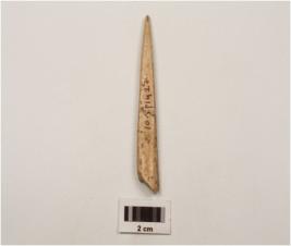 | Description / विवरण | A small bone point, with pointed end, surface is smooth and brown in colour. |
