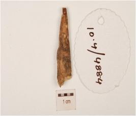 | Description / विवरण | Fragment of a bone point, has polished surface and edges are chipped off. |