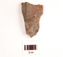 | Description / विवरण | Scraper made on chert end struck flake, flake scars on one side, irregular retouched edge and triangular cross section. |