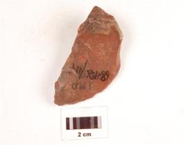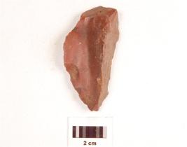 | Description / विवरण | Scraper made on chert, flake scars on one side, irregular retouch edge and triangular cross section. |